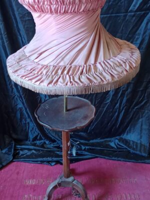 Antigue Lámpara de pie de madera c/Tulipa de tela plisada