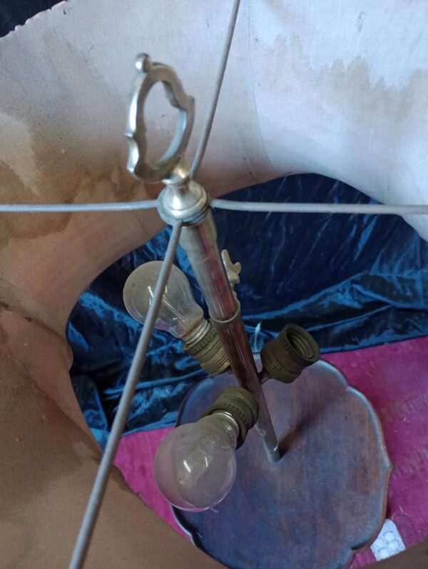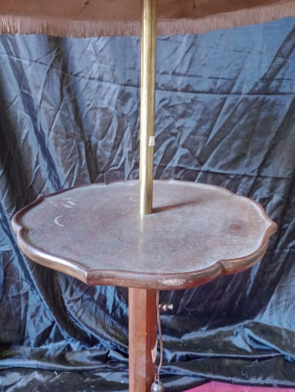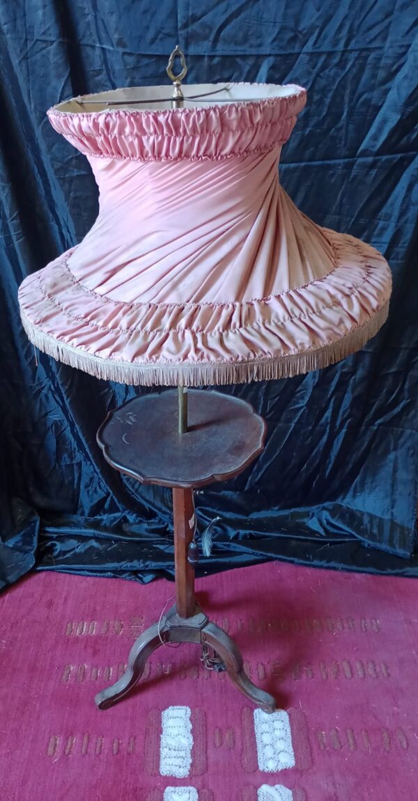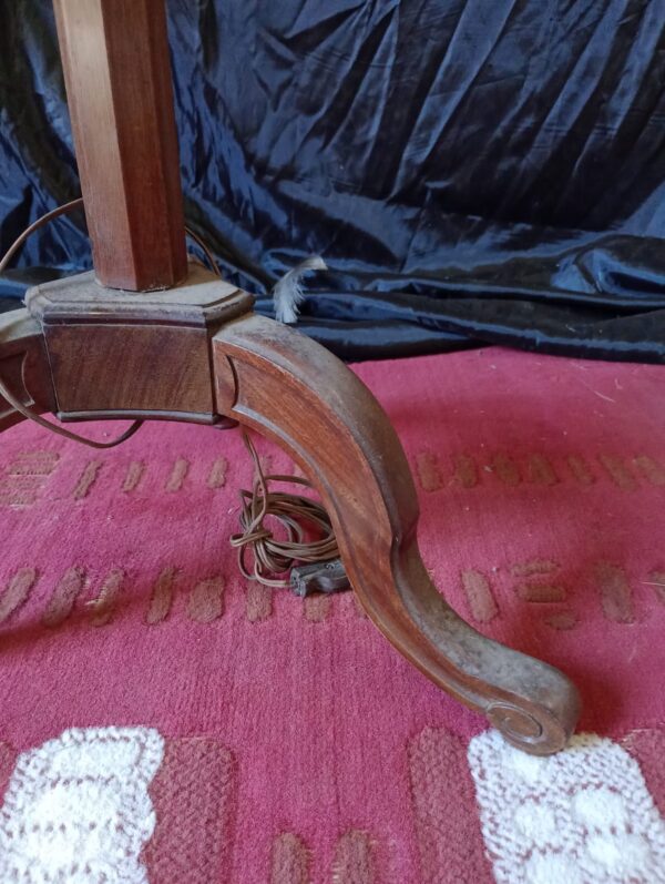 Antigue Lámpara de pie de madera c/Tulipa de tela plisada