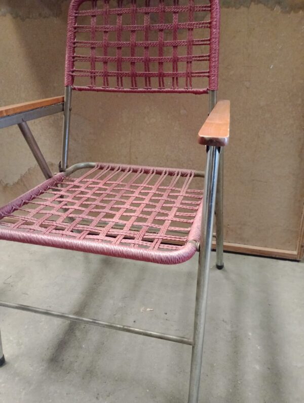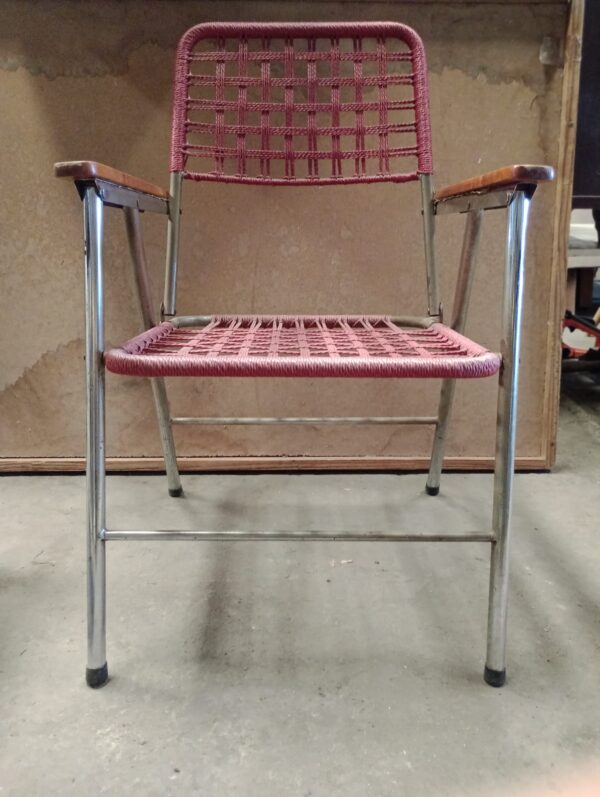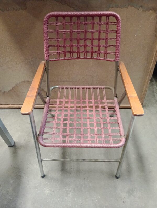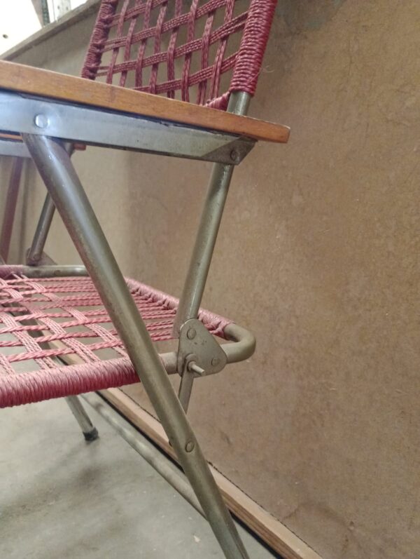 Inicio Venta Directa Silla plegable Silla plegable$15,000 Con reposabrazos de madera, un asiento y respaldo de red de plástico rojo. Silla plegable cantidad Añadir al carrito